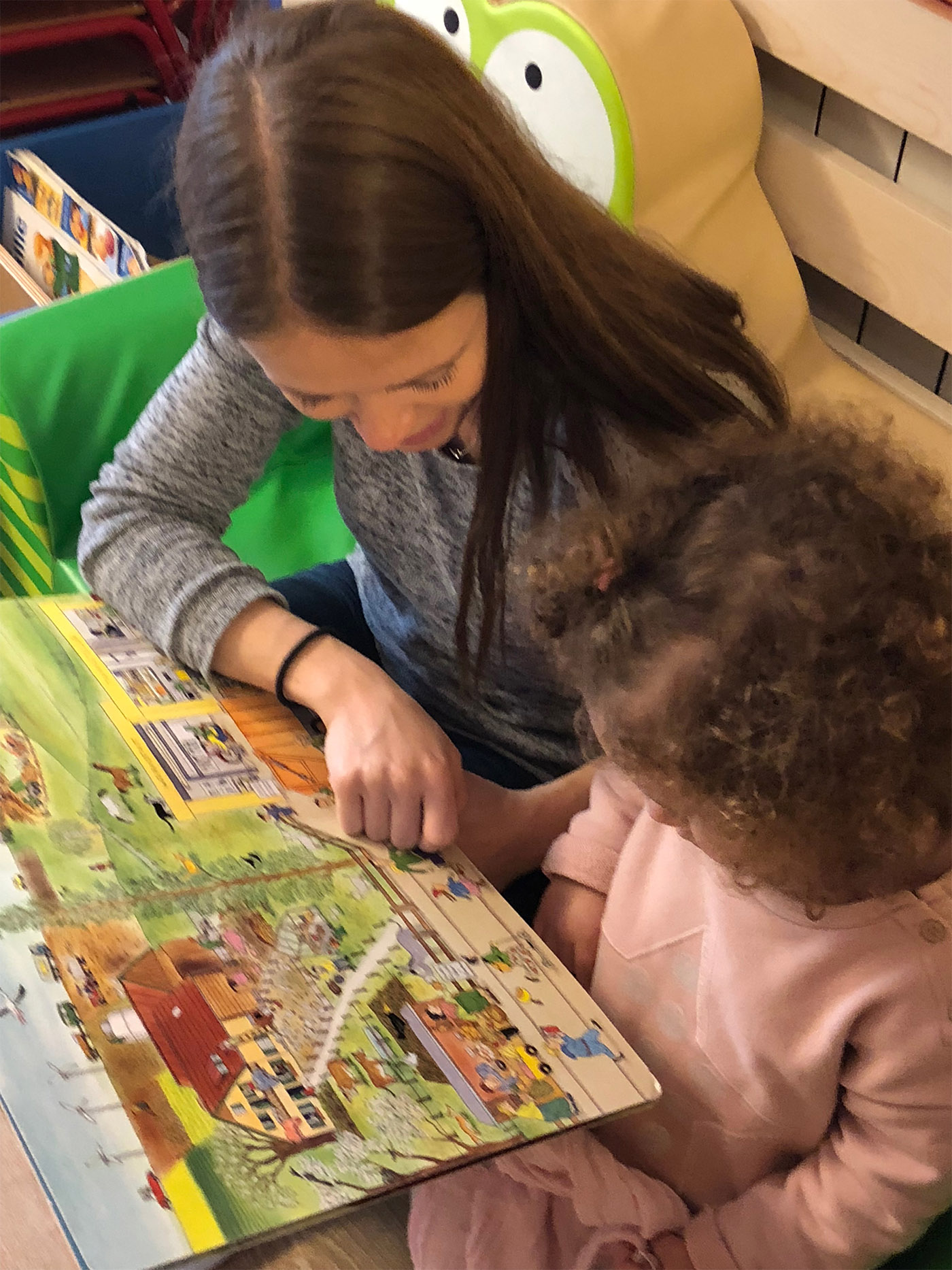 En el Maüsegruppe disfruto particularmente haciendo el desarrollo lúdico diario integrado del lenguaje, así como actividades específicas para apoyar a los niños en el aprendizaje del idioma alemán. Para ello, también asisto a cursos de perfeccionamiento en Alemania sobre las últimas investigaciones en materia de adquisición de un segundo idioma en edad preescolar, así como sobre métodos de promoción del idioma.